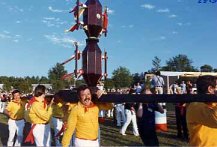 The Cero was presented in Gubbio on the 9th May 2002 and after being blessed in the Basilica of St. Ubaldo it left Italy on the 15th May from Milan Malpensa at 11.00 and arrived at the Kennedy airport in New York at 8.00 p.m. (in this way it made its journey at the same time as the Corsa of the Ceri!).