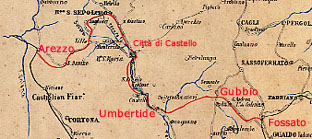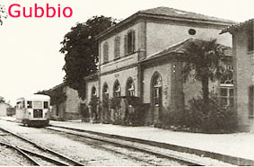 Il 9 luglio 1881 il Re Umberto I approvava con Regio Decreto la convenzione fra lo Stato ed il Consorzio per la Ferrovia Umbro - Aretina da Arezzo a Fossato. Per questo risultato si era battuto strenuamente Angelico Fabbri, illustre studioso eugubino e deputato al Parlamento.