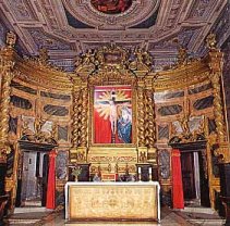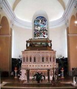 From 1916 to 1922 thanks to the insistent actions of Padre Emidio, the franciscan rector of the Sanctuary there was a big restoration and enlargement of the church. The generosity of many eugubinians, with that of the bishop Nasalli Rocca and the Pope Benedetto XV, allowed the naves to increase from three to five, and allowed the construction of a new bell tower (1919) replacing the old falling one and which was put at the opposite end of the church. Even the altar was adapted to carry the urn of the Saint and all around it a gate was built which was removed in 1980 when the altar was moved, from its position under the dome, towards the apse in order to enlarge the central nave.