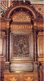 The big stairs lead to the great "Salone dell'Arengo", a huge room, covered by a single barrel-shaped arch which takes up almost all the space of this floor: during the period of the free comune all the heads of the families in Gubbio met here before taking any important decisions.