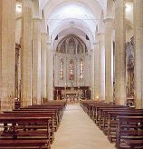 On the left side, facing the public gardens, there is an entrance door in romantic style, with two openings, one of which has been walled close, and on top there is a beautiful rose window. The facing, non completed on the upper part, presents its principal portal, in Romanic style, surmounted by a rose-window, made only in 1958. In that occasion the two windows which had been opened in 1700 on top of the door, were closed, when internally the church was transformed in baroque style.
